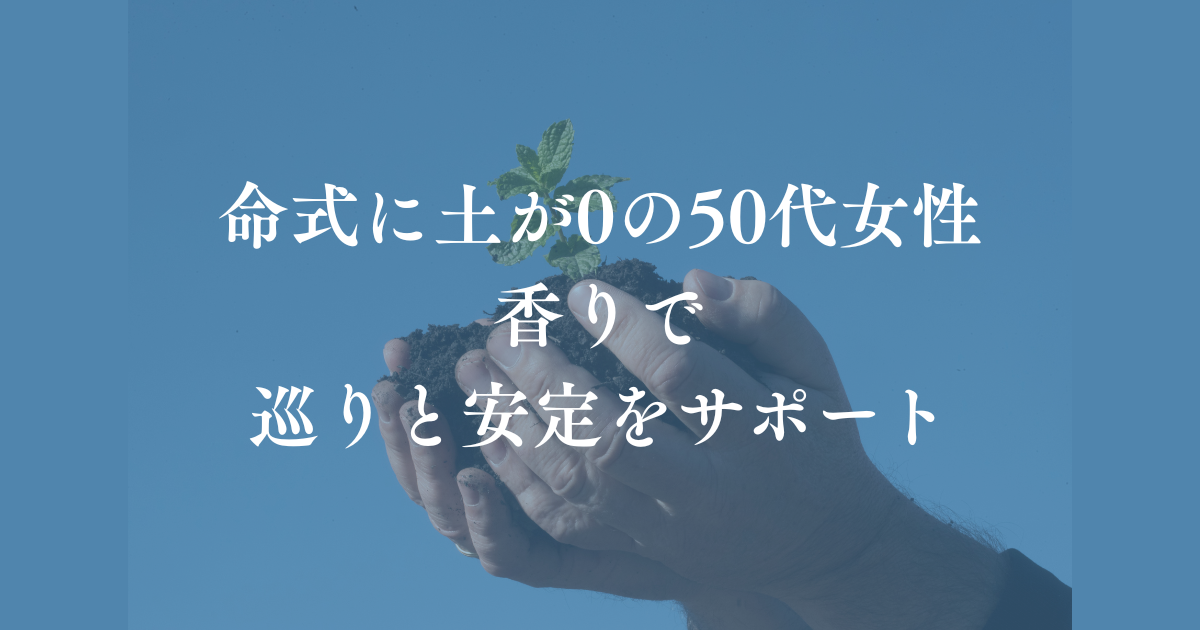 香眠セラピー体験談シリーズ、第2回。命式に「土」が0の50代女性のお話です。
